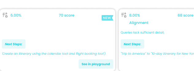 Effortlessly track evaluation scores, spot error patterns, and uncover performance trends to fine-tune your AI workflows and boost reliability at scale